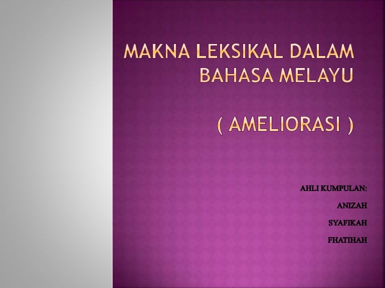 Makna Leksikal Dalam Bahasa Melayu Ameliorasi